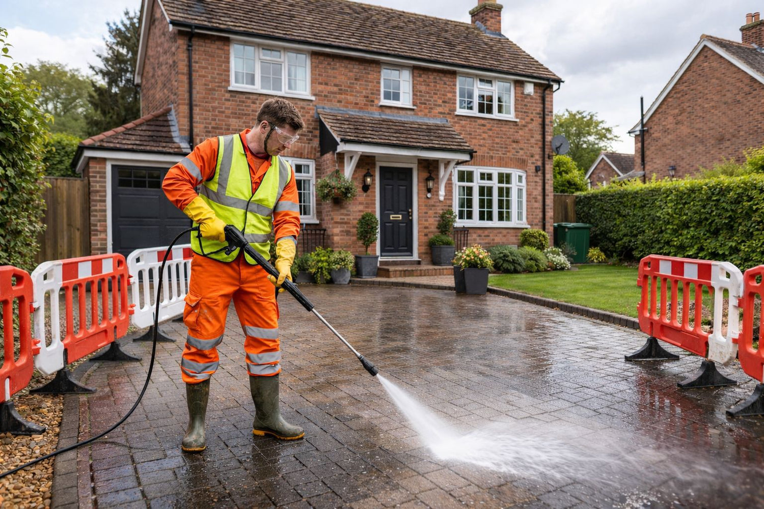 Transform your outdoor spaces with our professional driveway pressure washing service. We deliver expert cleaning for driveways, garden patios, and decking, removing stubborn dirt, algae, and moss build-up. Our team applies specialist, safe chemicals that prevent regrowth, ensuring longer-lasting results. For driveways, we complete the process with professional re-sanding after pressure washing, restoring both appearance and surface integrity. Trust our experienced technicians to revitalise your property's exterior with precision and care.